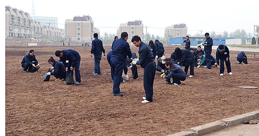 57日,為更好的完成航星園區(qū)的綠化工作,光電公司、希納斯公司全體員工清理種植綠地上的石子。