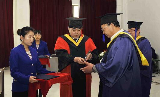 儀式在激情洋溢的樂曲中開始。首先大連海事大學(xué)信息科學(xué)技術(shù)學(xué)院自動化系主任李暉宣讀首批工程碩士名單。獲得大連海事大學(xué)首批工程碩士名單如下:北方航海公司王洪余、邱琦、范世偉、李忠曄、王德利、宿利楠、李海洋、王曉紅、李娜、儀表公司李鋼、海天科技公司黃帥。每一位畢業(yè)生聽到自己的名字時,都沉浸在金榜題名的幸福之中。集團(tuán)團(tuán)委書記黃亮專門為畢業(yè)生們發(fā)來賀信,并希望集團(tuán)青年員工以他們?yōu)榘駱?,不斷加?qiáng)學(xué)習(xí),努力提高專業(yè)技能水平,增強(qiáng)責(zé)任感和使命感,為給予員工創(chuàng)造良好學(xué)習(xí)和工作環(huán)境的航星集團(tuán)做出更大貢獻(xiàn)。緊接著,11名碩士畢業(yè)生身著學(xué)士服、頭戴學(xué)士帽,在歡快的樂曲聲中,精神抖擻地走上主席臺。大連海事大學(xué)信息科學(xué)技術(shù)學(xué)院副院長曹德信、集團(tuán)黨委書記、董事長劉義為畢業(yè)生撥流蘇,進(jìn)行學(xué)位授予。當(dāng)工程碩士們從領(lǐng)導(dǎo)手中鄭重地接過學(xué)位證書的瞬間,激動與喜悅之情溢于言表,他們向領(lǐng)導(dǎo)們深深鞠躬致謝。曹德信副院長發(fā)表了熱情洋溢的講話。他首先祝賀11名工程碩士順利畢業(yè),并為他們?nèi)〉玫某煽兏械津湴?,希望他們在工作崗位上能夠始終堅持學(xué)習(xí)、堅韌不拔、愛崗敬業(yè)、腳踏實(shí)地地工作,為航星集團(tuán)的發(fā)展貢獻(xiàn)自己的力量。同時,曹院長祝愿畢業(yè)生們前程什錦,歡迎常回母??纯础?/span>